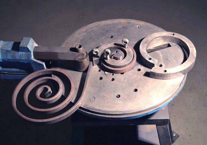Основа устройства — шаблон в виде дуги и закаленные ролики, позволяющие двигаться ручному приводу. В зависимости от типа инструмента, он может работать с квадратным прокатом со сторонами 14×14 миллиметров, неширокой полосой до 25 мм, а также прутком.