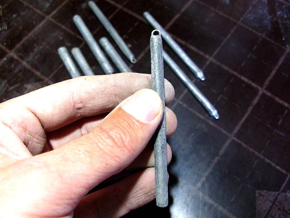 Таким образом можно экспериментировать с формами и весами грузил, изобрести какую-то особенную форму грузила, которых нет в магазинах. Например, в прошлом сезоне я экспериментировал с грузами «палочка», делал несколько вариантов незацепляемых грузил с разными длинами и диаметрами. Вес таких грузил «палочек» можно уменьшать прямо на рыбалке, благодаря небольшому диаметру 6 и 8 мм (если нужно уменьшиться в весе, можно просто откусить кусачками часть грузила). Также благодаря таким диаметрам груз проходит 95% зацепов!