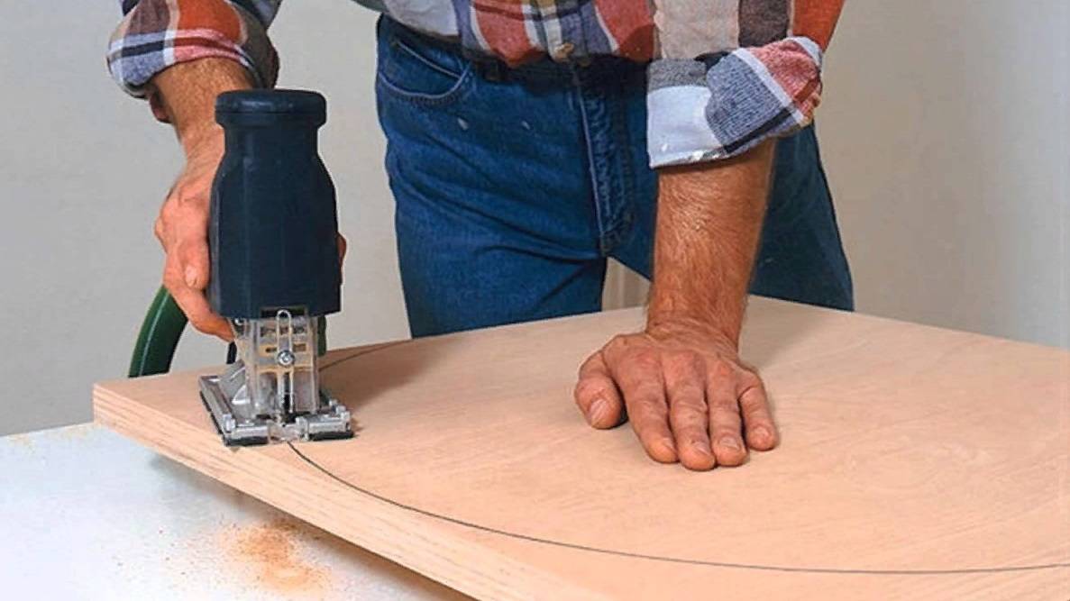 Пропил таких листов пилкой электролобзика получается ровным, а выполняется быстро по линии разметки. Закругления углов на самодельной мебели и создание фигурных вырезов без использования сложных фрез и шаблонов также подвластны домашнему мастеру при пользовании этим инструментом.