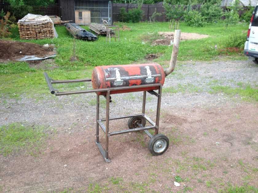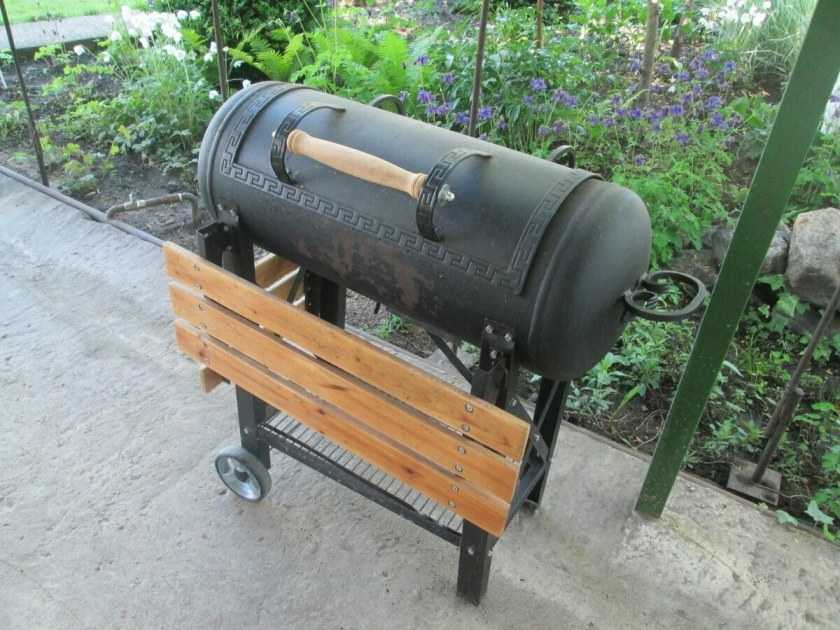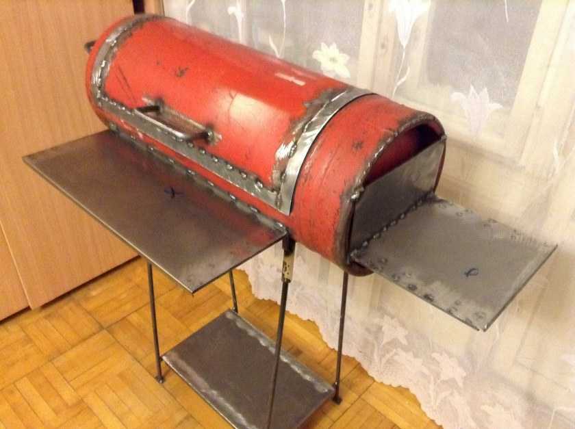 Идеальным вариантом для стационарного барбекю будет автомобильный газовый баллон на 50–80 литров. Он имеет увеличенный диаметр, поэтому разжигать дрова будет намного удобнее. Кроме того, такой сосуд обладает повышенной вместительностью. Его ширина даёт возможность задействовать всю длину стандартного шампура, а это позволит приготовить обед на большую компанию. Единственным нюансом является то, что найти ненужный автомобильный газовый бак будет непросто, а покупка нового будет нецелесообразной с финансовой стороны.