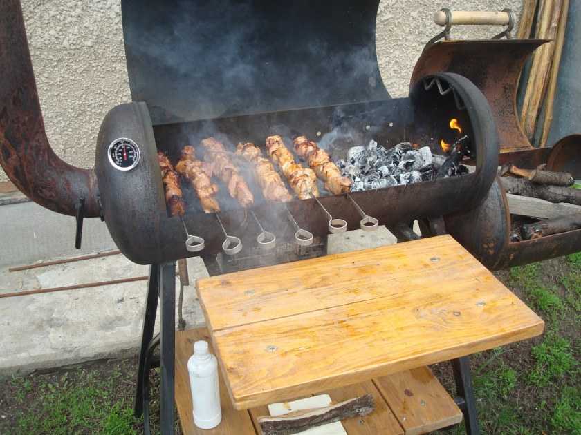 Мангалы, построенные из автомобильных газовых баллонов, отличаются увеличенной шириной, а следовательно, и большей вместительностью