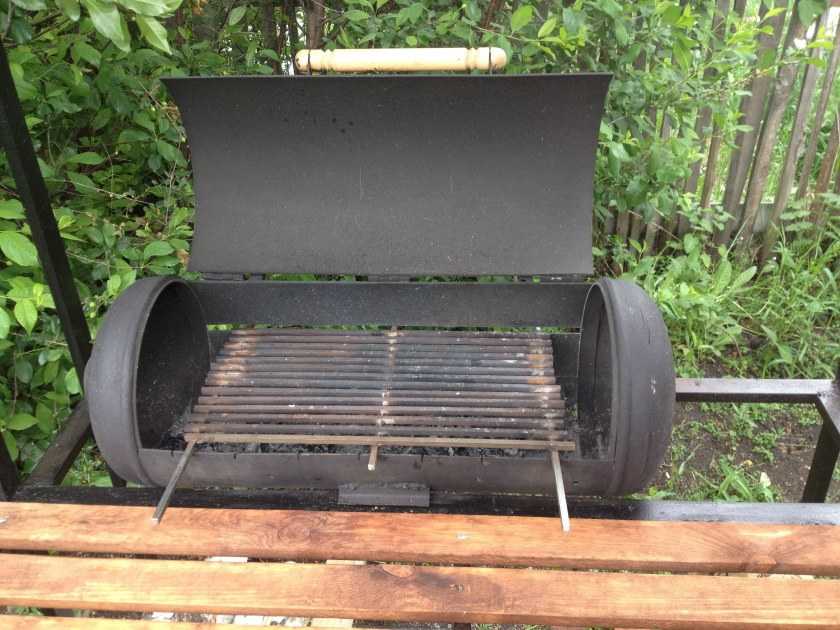 - Проверьте, не падает ли мангал в положении с открытой крышкой. Если устойчивость низкая, то ножки можно дополнительно скрепить металлическим уголком.