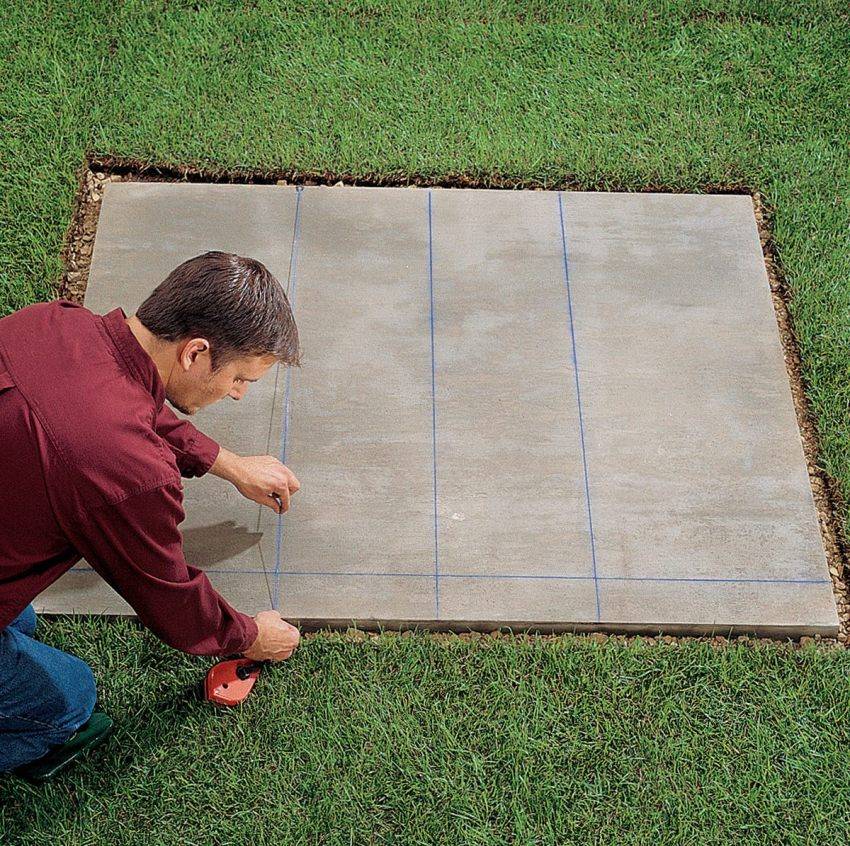 Для фундамента выкопай ровную яму без перепадов высоты и с запасом около 5 см со всех сторон. Закрой дно шлаком, установи опалубку, уложи армирующую сетку и залей конструкцию бетоном. Фундаменту нужно простоять хотя бы три дня, чтобы он полностью просох и затвердел.