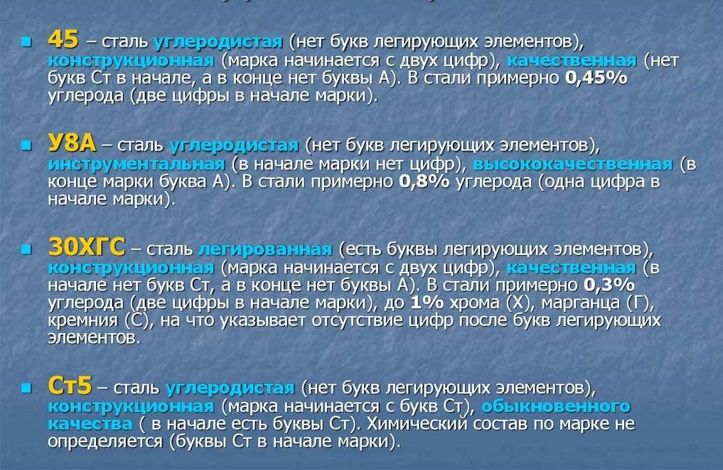 Пример расшифровки сталей