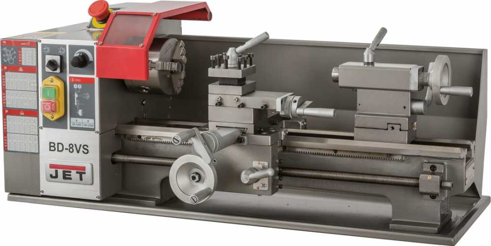 Jet JML- 1014i: станина цельнолитая из чугуна. Скорость вращения изменяется плавно в нескольких диапазонах. Чтобы изменить диапазон, необходимо переставить на шкиве ремень. Очень тихо работает, удобно выставлять обороты на электронном блоке. Чтобы стопорить шпиндель предусмотрена нажимная ручка, которая находится слева.