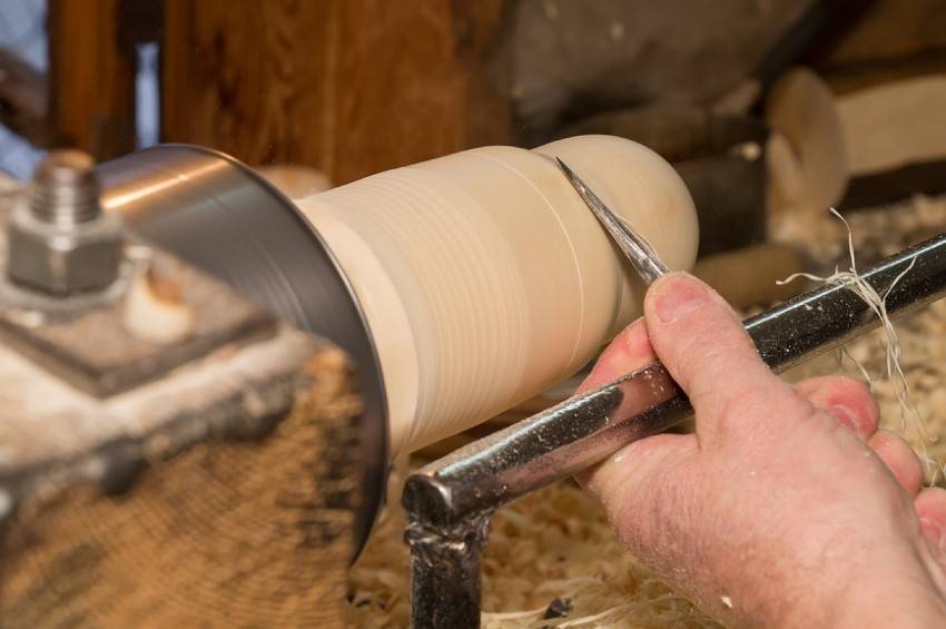 Настольный токарный станок по древесине выполнит операции по обточке, шлифованию, выборке пазов и нанесению резьбы. Спецификой является использование ручных резцов и фасонных приспособлений. Для фиксации рабочего инструмента используется подручник, который устанавливают между передней и задней опорой