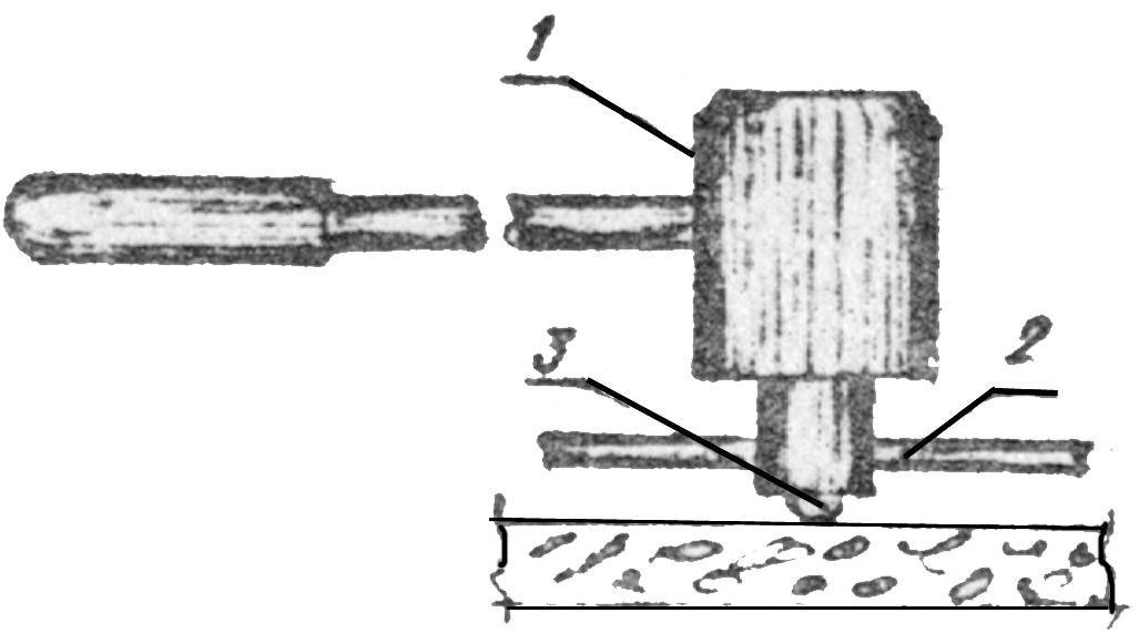 - В готовом основании головки нужно просверлить отверстие, в котором будет фиксироваться рукоятка. Чтобы не сделать дырку слишком большой, стоит заранее хотя бы продумать поперечное сечение ручки.