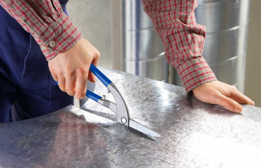 Наиболее распространенным вариантом являются универсальные ножницы по металлу. Инструмент имеет компактные размеры и небольшой вес. С его помощью можно осуществлять резку и формовку малых и больших металлических листов, обрабатывать углы и центр заготовок.