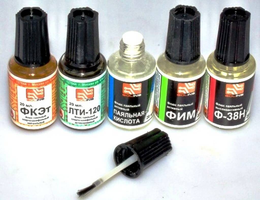Чтобы залудить деталь, можно применять самые разнообразные материалы, вплоть до аспирина. Но лучше всё делать правильно и использовать материалы, предназначенные для пайки, а именно — флюс. Лучше всего подходят такие марки, как Ф34, Ф64, ФИМ или ФТБф. Чем качественней флюс, тем проще пройдет весь процесс.
