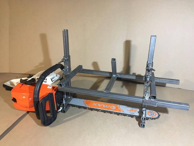 правда, иногда в хозяйстве можно встретить стационарную модель, которую предприимчивые хозяева собирают в специально отведенном для этого месте на участке. Здесь уже применяется более массивный металлопрокат — швеллер и уголок, из которого делается грядка для ствола дерева. Огромная тележка с прикрепленной бензопилой перемещается по стволу по направляющим с помощью роликов. Такие изделия хоть и дают более точный срез, но гораздо сложнее и дороже в производстве, поэтому оправдывают себя только там, где необходимо работать с большим объемом или длительное время.
