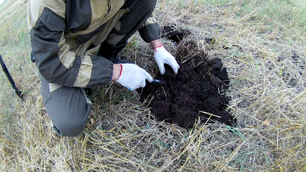 А представьте, что земля сырая, почти жижа, в ямке вода и так далее… Руки и одежда в таких условиях за пару минут станут грязными, о нормальном и культурном поиске и времяпрепровождении тут и речи идти не может
