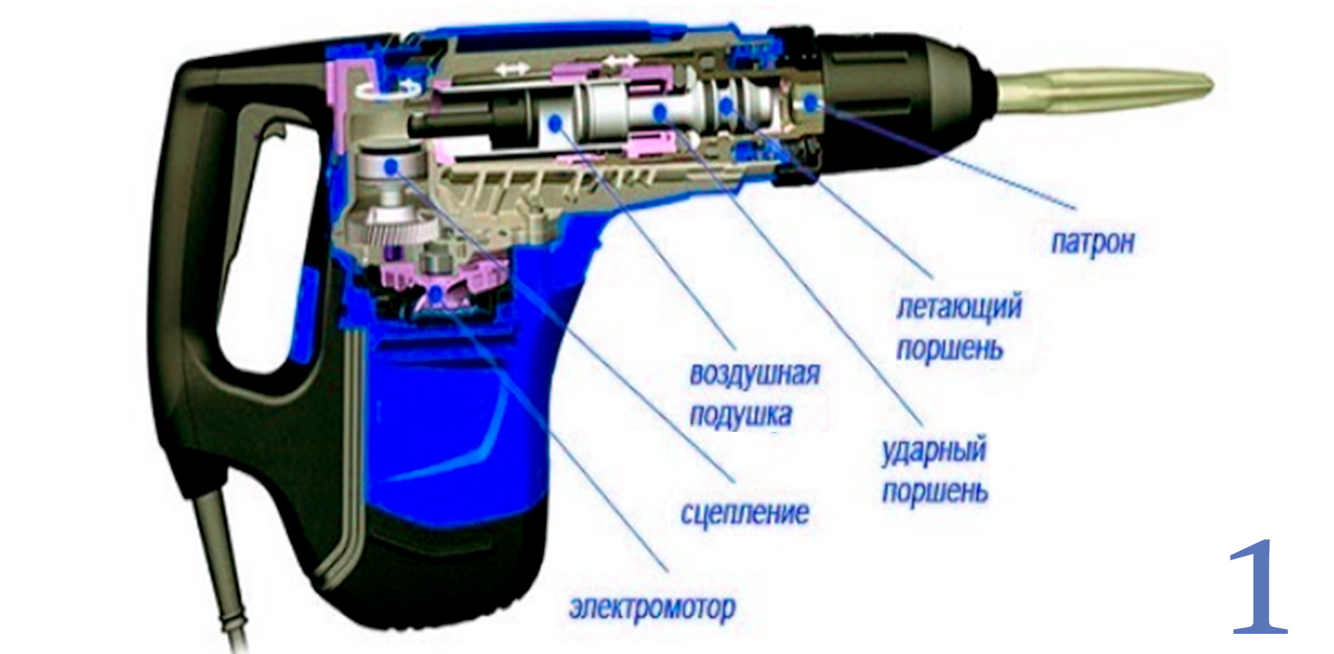 Кроме этого, различают его по механизму работы, который бывает электромагнитным и пневматическим. Последний тип механизма выпускается одно-, двух-, и трёхрежимный. То есть можно выполнять сверление, удар или обе операции одновременно.