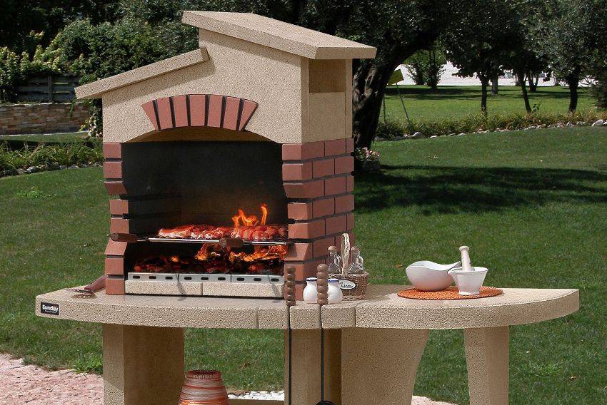 - расположенная рядом с решетками столешница. Поскольку шашлыки в другие блюда в процессе приготовления часто поливают маринадом или соусом, добавляют ингредиенты или подготавливают новые порции, аналог разделочного стола очень полезен.