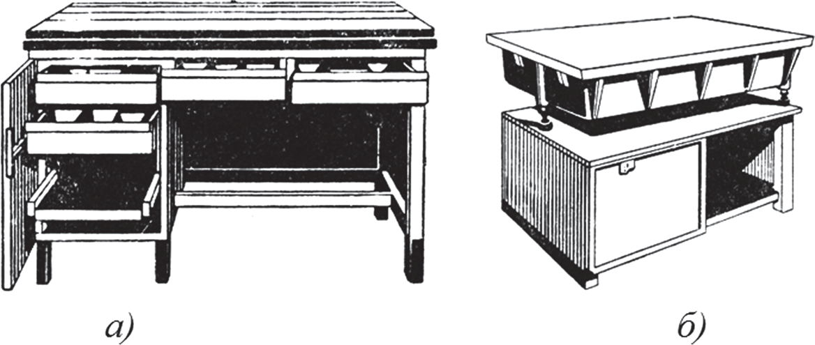 Большие разметочные плиты устанавливают на специальных подставках (тумбах) с выдвижными ящиками для хранения инструмента. Разметочные плиты малых размеров помещаются на деревянных подставках и устанавливают непосредственно на верстаках.