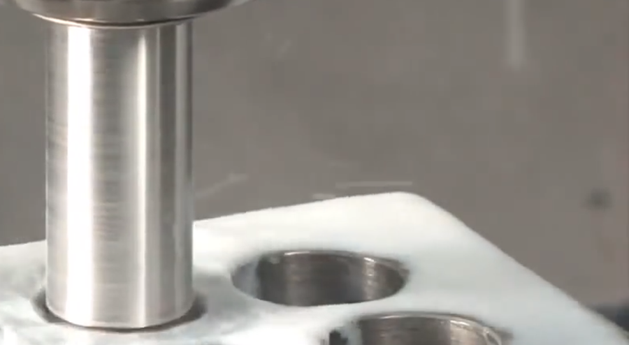 Для обработки отверстия нужно закрепить развертку, добавить СОЖ и совместить оси. Далее необходимо задать нужную скорость вращения и запустить оборудование.