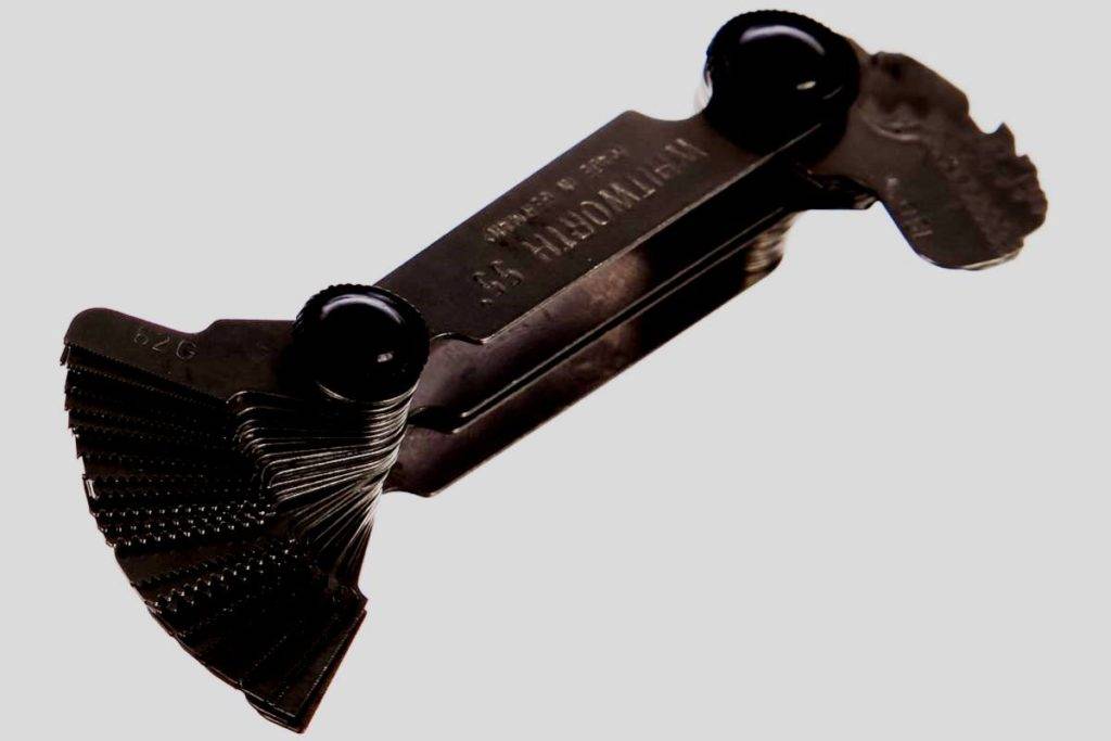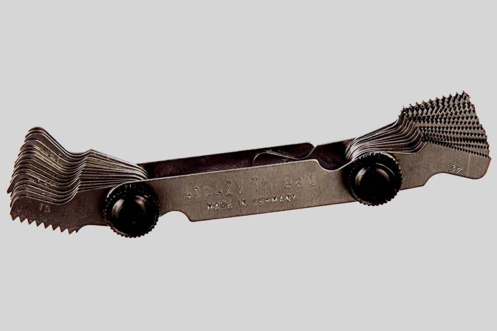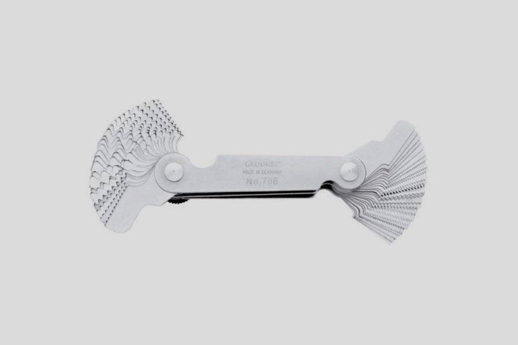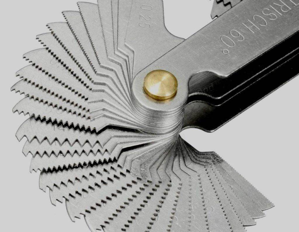 В специализированных магазинах можно приобрести резьбомер. Количество измерительных пластин у этого устройства может быть различным. Чем больше, тем удобнее использовать резьбомер.