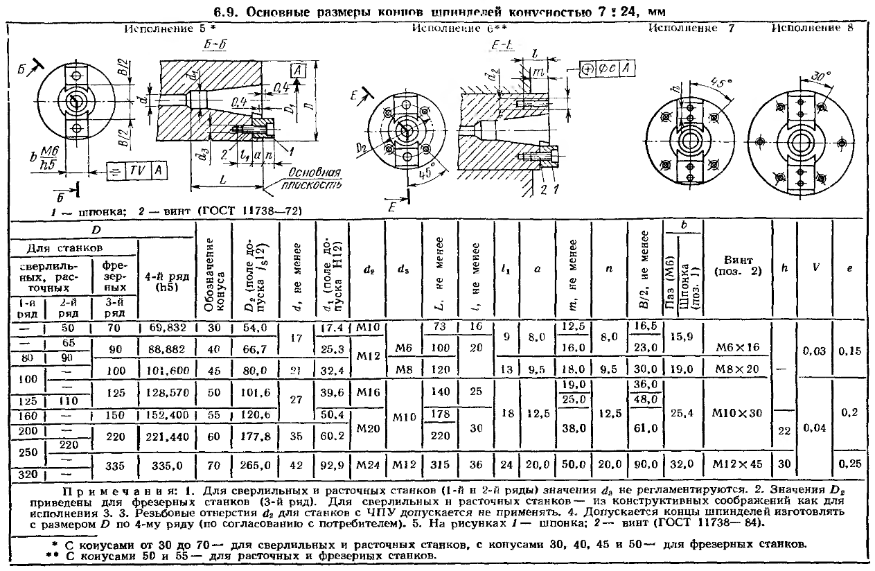 Отметим важный отечественный стандарт ГОСТ 24644 – определяет размеры концов шпинделей и хвостовики инструментов сверлильных, расточных и фрезерных станков.