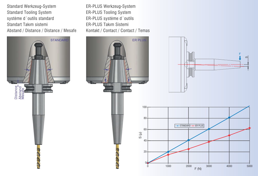 • В соответствии с нормами DIN 69880-6 биение цанговых патронов DIN 6499 и DIN 6388 составляет 0,02