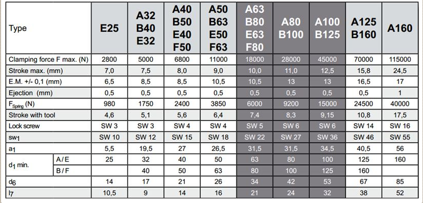 Хвостовик в стиле А имеет размер конуса на один размер больше, чем в стеле В, это условие верно и для стилей D и F. Оправки в стиле С были разработаны исключительно для ручного зажатия.