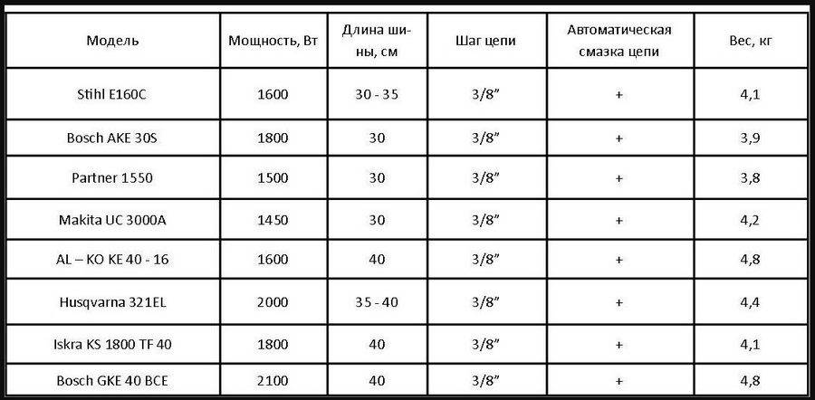 - Модели бензопил малого и среднего мощностного диапазона комплектуются шинами длиной от 30 до 40 см.