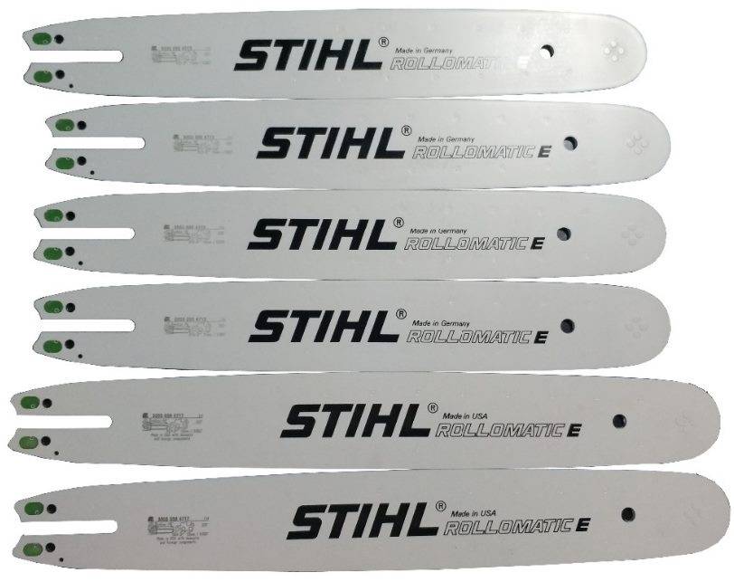 Унифицированные по посадочным размерам шины представлены в небольшом ассортименте. Как правило, каждый производитель использует собственные стандарты, что исключает возможность эксплуатации бензопилы с пильным оборудованием других брендов.