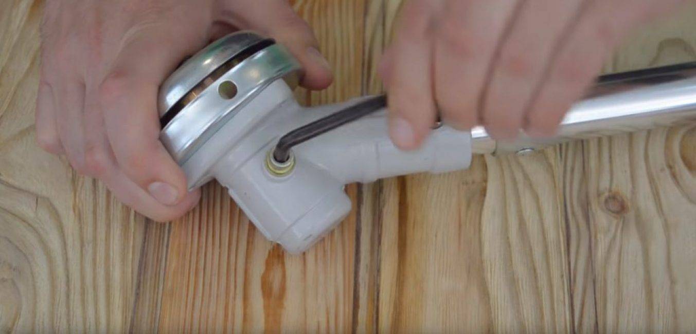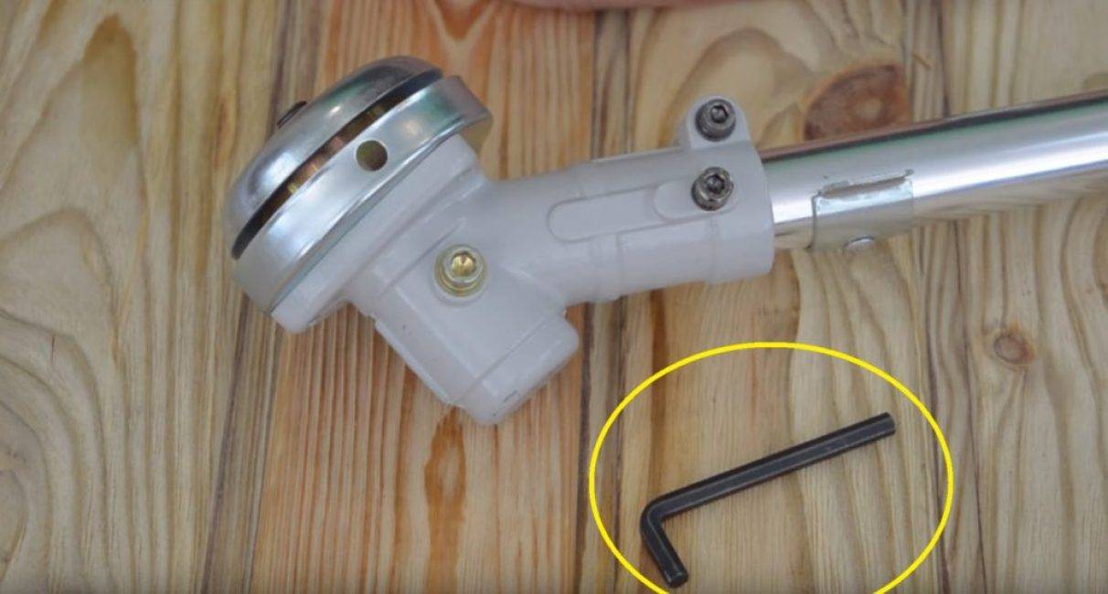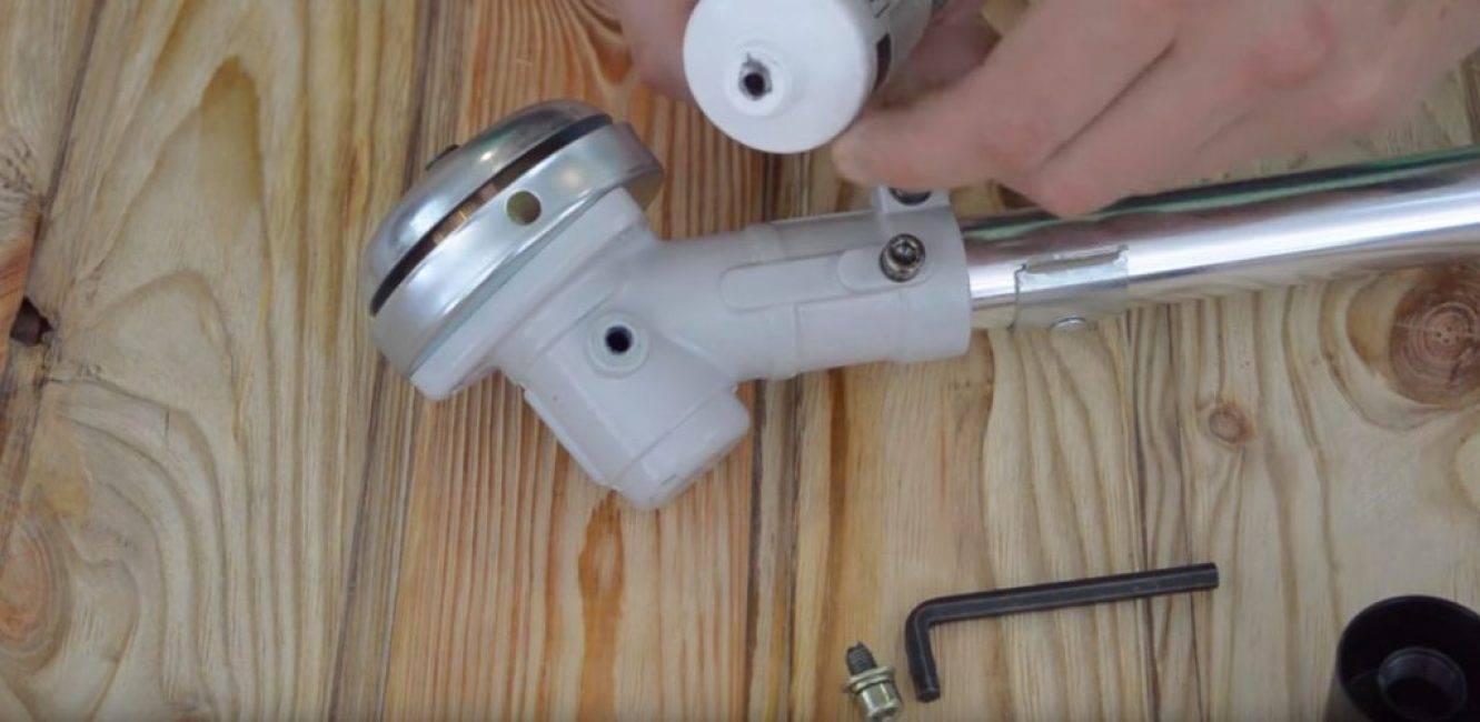 Для того, чтобы получить доступ к редуктору, его следует открыть. Сделать это достаточно просто – нужно при помощи шестигранного ключа открутить редукторный болт. Этот болт у всех мотокос находится в одном и том же месте – непосредственно возле рабочего органа.