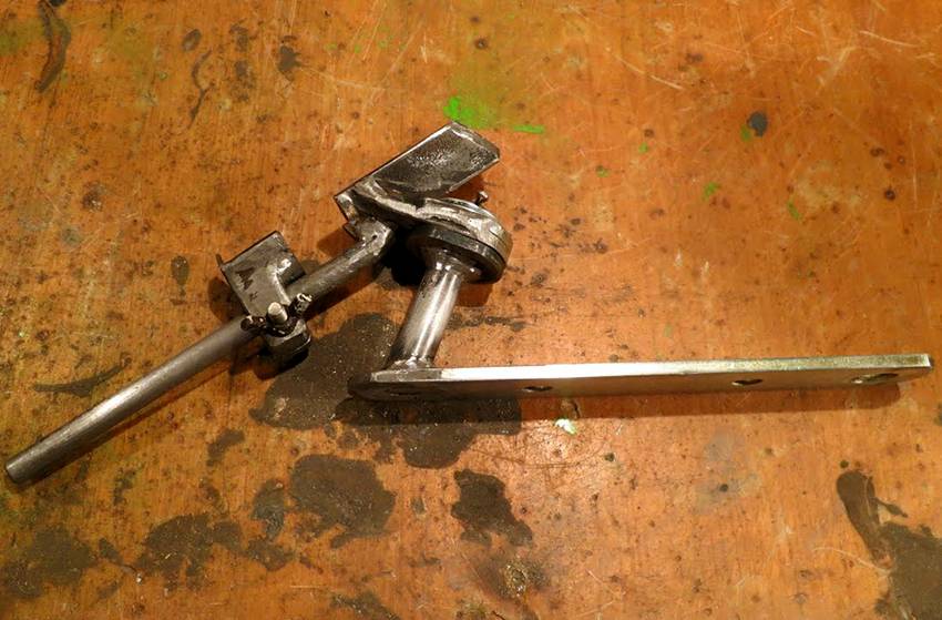 - К большей стороне петли приваривается уголок, в нем нарезается резьба, вставляется болт – данная часть конструкции будет выполнять фиксацию к подручникам.