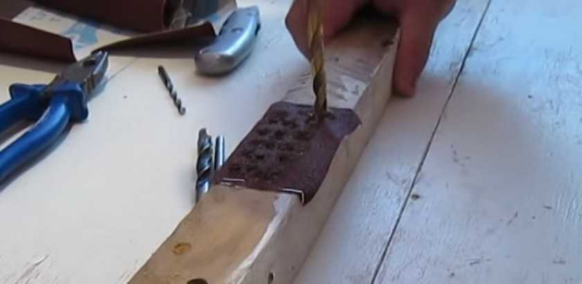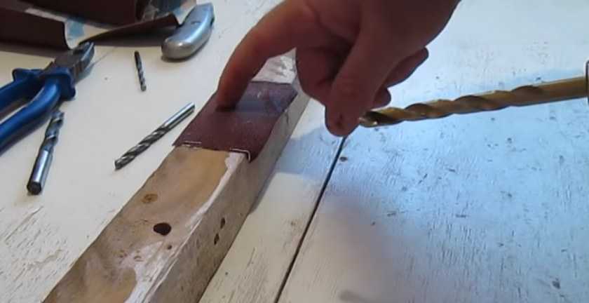 Далее достаточно просто несколько раз просверлить наждачную бумагу на всю длину сверла. В целом можно обойтись даже без трубы, просто свернув достаточно длинный отрезок наждачной бумаги.