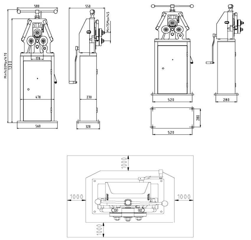 Чертеж гибочного станка для профильной трубы с подъемной платформой