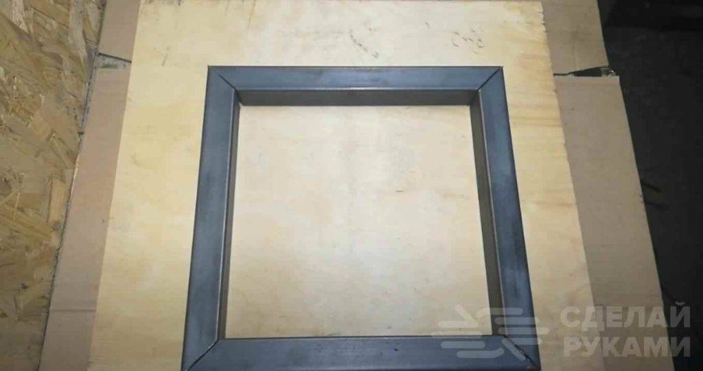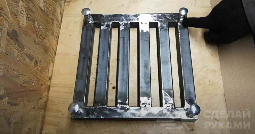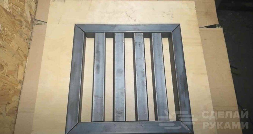 После этого отрезаем еще четыре заготовки, и привариваем их внутри получившейся рамки.