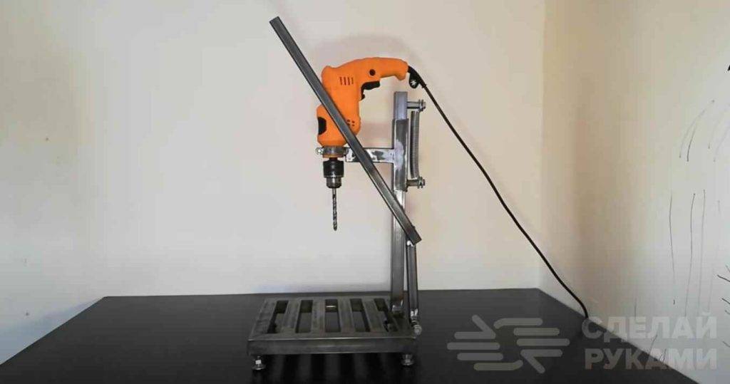 Идея изготовления стойки под дрель своими руками принадлежит автору YouTube канала MakeTools. Основной материал для изготовления конструкции — профильная труба с толщиной стенки 1,5 мм.