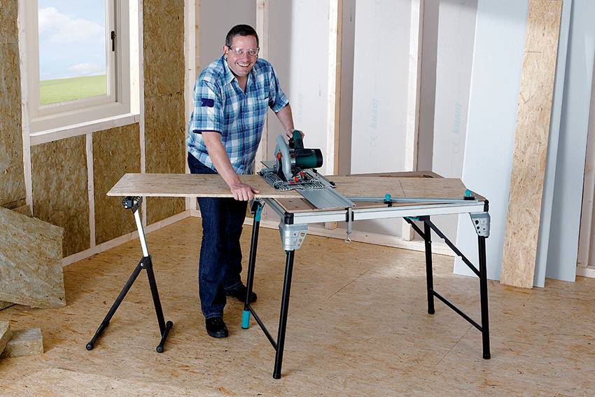 Ваше сооружение будет «привязано» к одному месту и впоследствии вы не сможете сдвинуть громоздкую конструкцию даже на малое расстояние. На данной поверхности вы с легкостью сможете обработать массивные деревянные заготовки и тяжелые доски с брусьями;