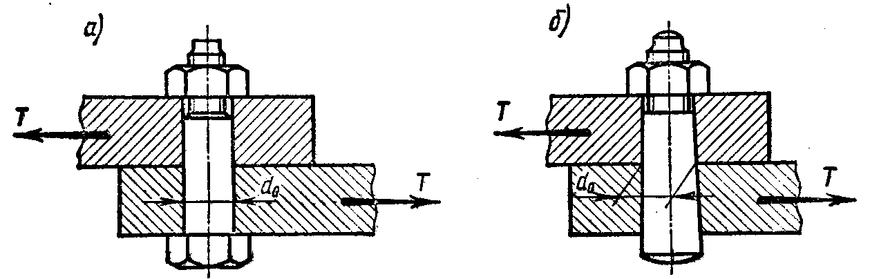Для уменьшения диаметров болтов применяют также точеные (калиброванные) болты, устанавливаемые в отверстия из под развертки. Они могут быть цилиндрическими (рис. 3.36, а) или конусными (рис. 3.36, б). Эти болты работают на срез, как штифты.