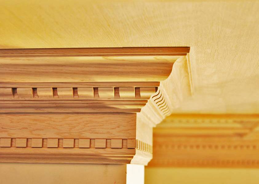 Дерево – самый твердый и ударопрочный из всех материалов, идущих для изготовления галтелей. Изделия из него дольше сохраняют внешний вид и способны выдерживать значительное механическое воздействие. В стиле некоторых интерьеров наиболее применимы именно деревянные фризы. Дерево облагораживает помещение и наполняет его теплотой. Однако, имеет более высокую, чем у предыдущих материалов, цену.