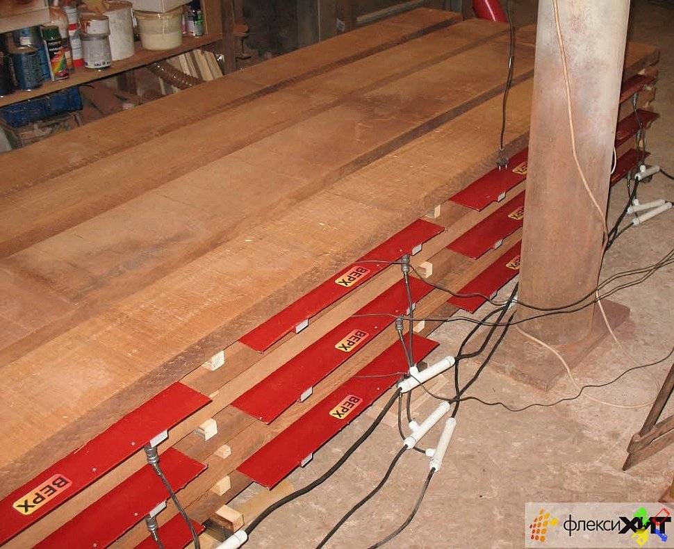 Всего-то нужно уложить доски штабелями с зазором, между ними разместить греющие элементы и при помощи терморегулятора управлять процессом. Но, чтобы это все работало и было безопасно необходимо соблюдать определенные правила.