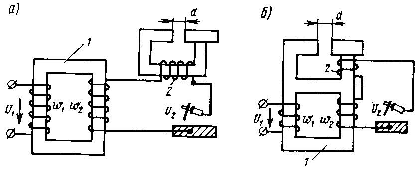 1б).Величина сварочного тока зависит от диаметра электрода и регулируется реактивным сопротивлением индуктивной катушки, которое зависит от величины воздушного зазора А. Увеличение воздушного зазора в магнитопроводе индуктивной катушки вызывает уменьшение ее реактивного сопротивления, вследствие чего ток в сварочной цепи повышается. Иногда индуктивные катушки совмещают в одно целое со сварочным трансформатором.Поделитесь полезной статьей:
