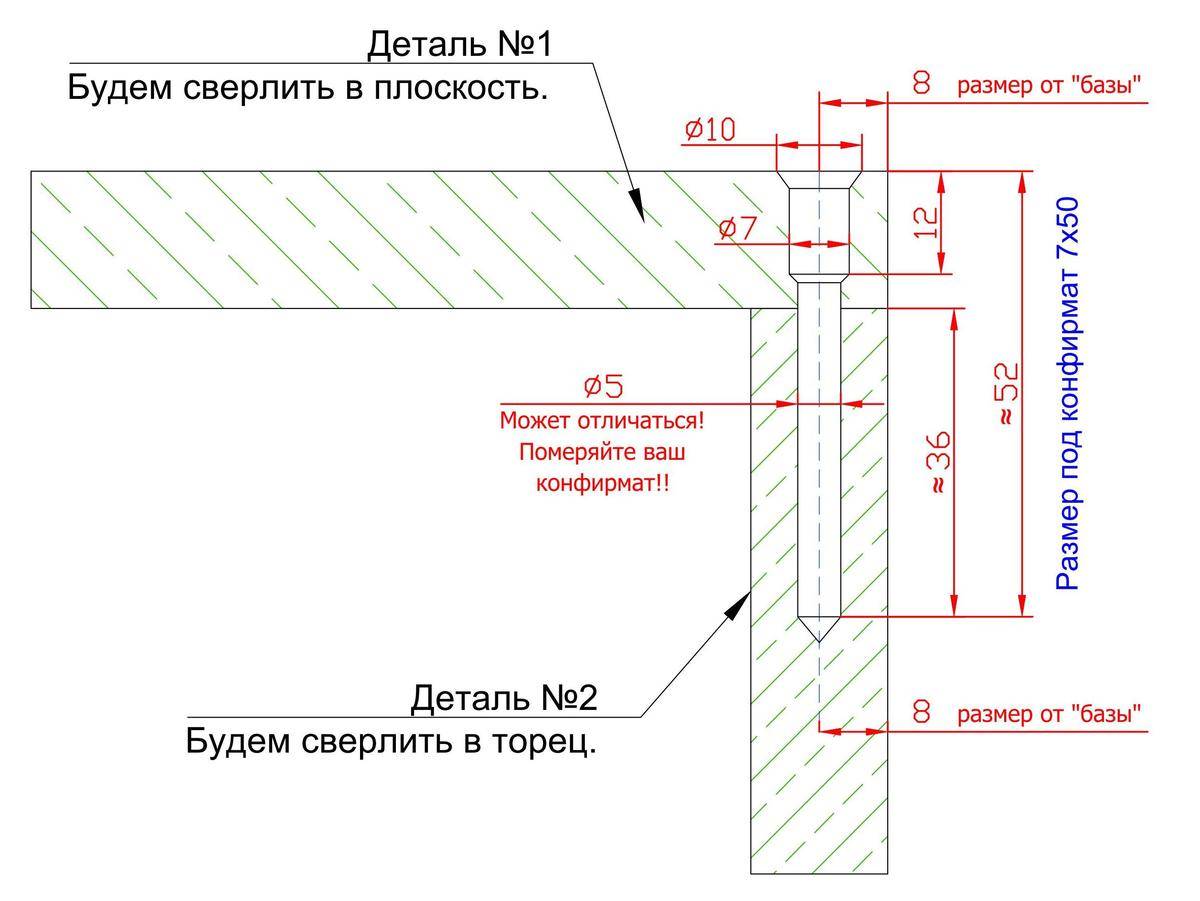 Как просверлить отверстие под размещение конфирмата