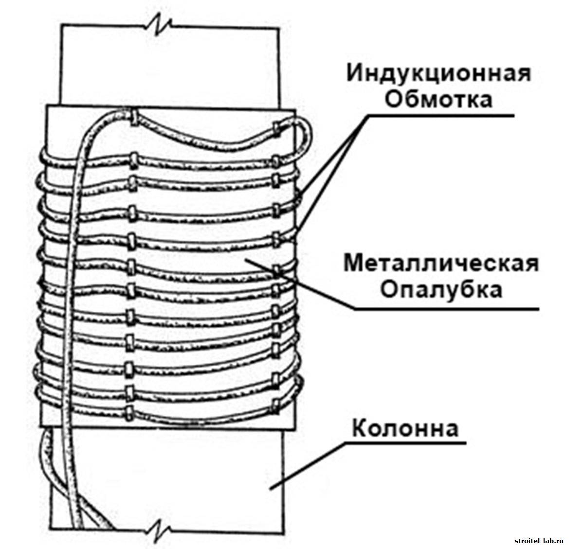 Схема прогрева бетона зимой с помощью кабеля пнсв