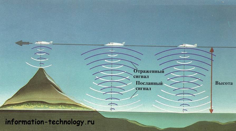 Существует два вида радиовысотомеров. Один определяет высоту по изменению частоты между посланной радиоволной и той, что пришла на борт, отразившись от поверхности (рисунок справа). Другой вид радиовысотомера определяет время между посланным и вернувшимся сигналом. Первого вида высотомеры в основном используются на малых высотах, а второго — для измерений на больших высотах.