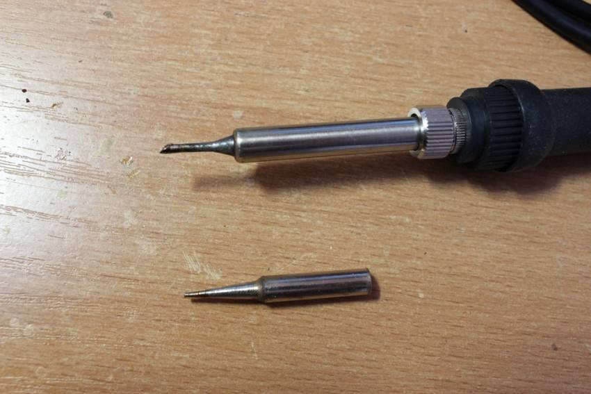 Здесь стоит отметить, что чем больше будет длина жала от нагревателя до рабочего края, тем дольше будет происходить повышение температуры. При небольшой мощности блока питания и слишком длинном жале паяльника возможно, что устройство и вовсе не достигнет рабочей температуры. Но здесь можно поэкспериментировать и рассчитать всё так, чтобы в итоге получилось некое подобие паяльной станции, которая имеет меньшие рабочие температуры для работы с микросхемами и иными SMD-элементами.
