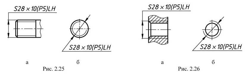 Обозначение резьбы на чертежах выполняется по следующим правилам.