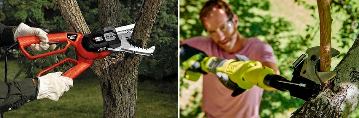 - Сучкорез. Работающие от сети 220 В, секаторы обеспечивают отличную производительность и являются экологически безопасными. Они подходят для удаления средних и крупных ветвей и в основном характеризуются умеренным весом. Недостатком секаторов с шестом является то, что они зависят от длины шнура питания.