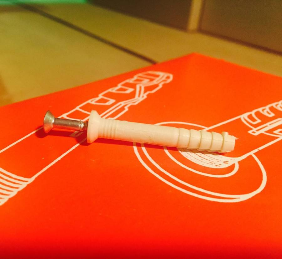 Чтобы разместить на стене легкую по весу полочку либо фоторамку, можно взять обычный дюбель — гвоздь.