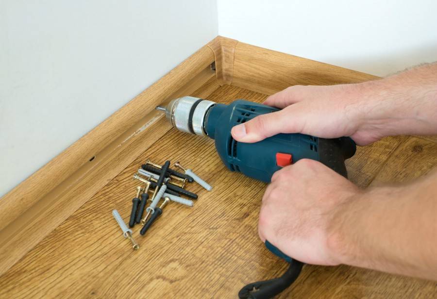 Шаг 9 | Один профиль крепится минимум тремя крепежами. Для фиксации направляющей к плоскости пола и стен применяют пластиковые дюбель-гвозди. К потолку профиль крепят при помощи анкерных металлических дюбелей. |