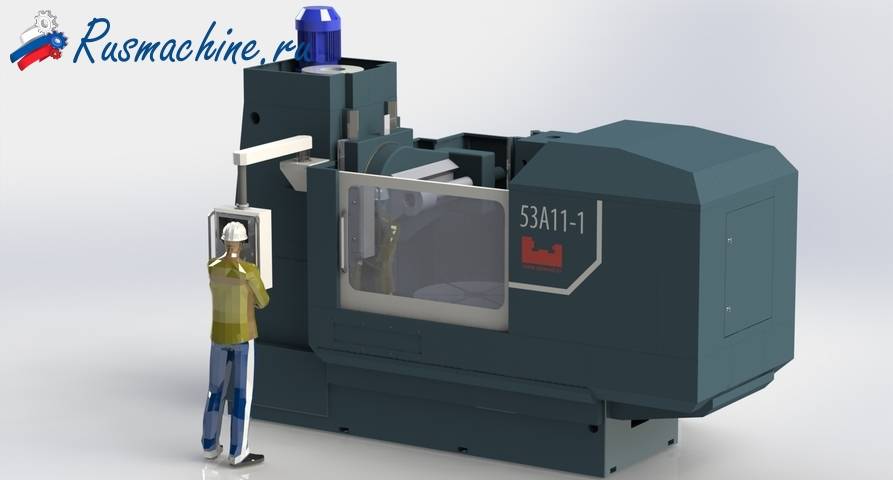 Зубофрезерный станок модели 53А11 с УЦИ и преднабором, позволяет изготавливать прямозубые и косозубые шестерни с максимальным диаметром 1250 мм и модулем 16. Модернизированный станок имеет современную